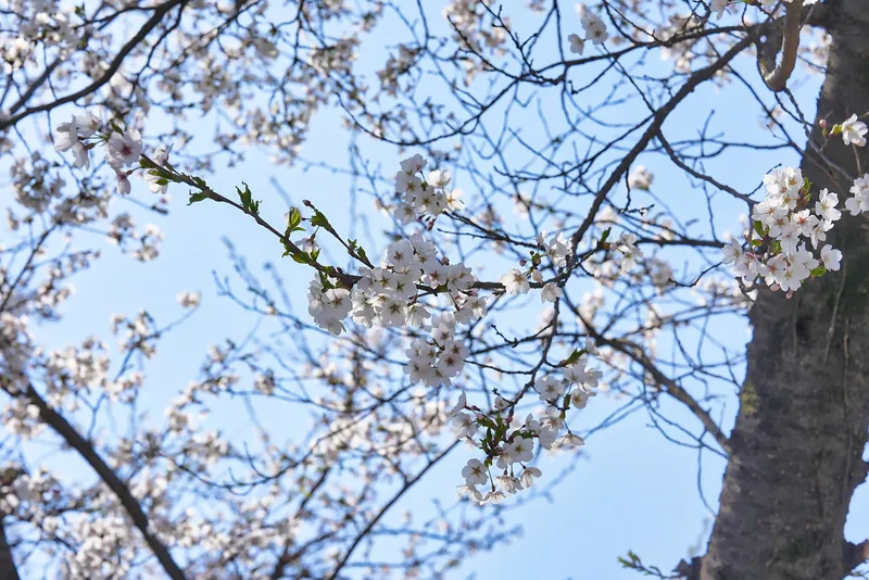 사람이 그렇게 많지 않아서, 조용하게 둘이서 손 꼭 잡고 산책하기 참 좋은 길입니다. 벚꽃잎 사이로 보이는 하늘, 그리고 가끔 들려오는 새소리는 잠시 도시의 번잡함을 잊고 싶을 때 딱 좋은 장소입니다.