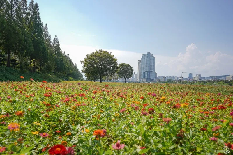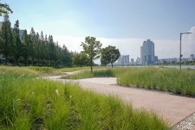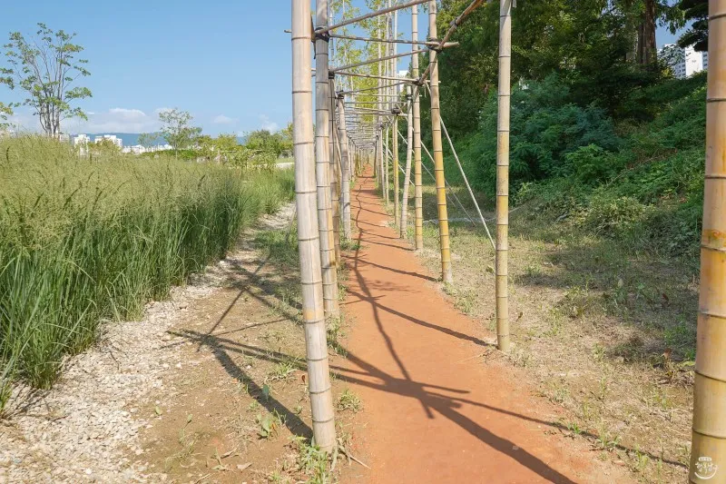 백일홍 꽃밭에서부터 시작된 울산 남구 태화강 황토맨발 길은 그라스 정원까지 이어져 있어요.