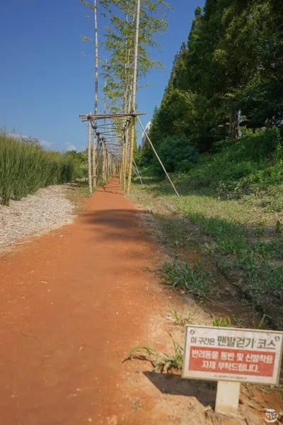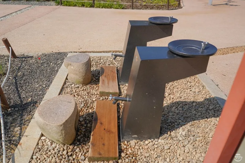 벤치 옆에는 황토맨발 길을 걷고 나서 발을 씻을 수 있는 세족장까지 준비되어 있으니 마음 편히 황토 맨발길 걸으시고 깨끗하게 씻고 돌아가실 수 있어요.