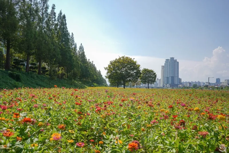 그라스 정원의 끝에는 끝이 보이지 않는 백일홍 꽃밭이 펼쳐져 있고요.