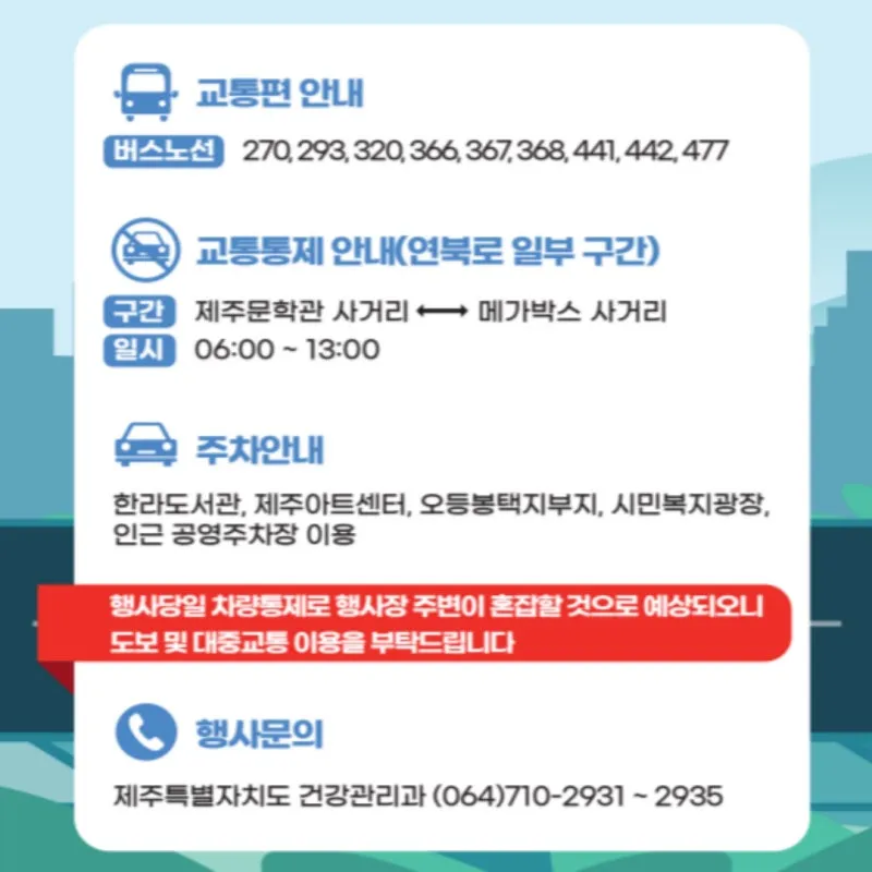 사전접수 9월2일(월) ~ 9월25일(수) 제주특별자치도청 홈페이지 신청