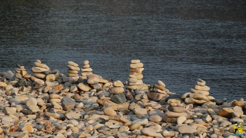 몽돌해변에는 각자의 소망을 담은 소원 탑들이