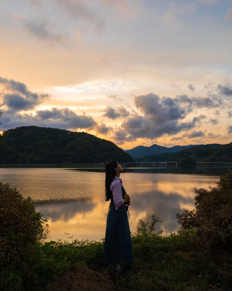호수 물빛까지 은은하게 노을로 물드는데, 보고 있으면 마음이 편안해져요🥰