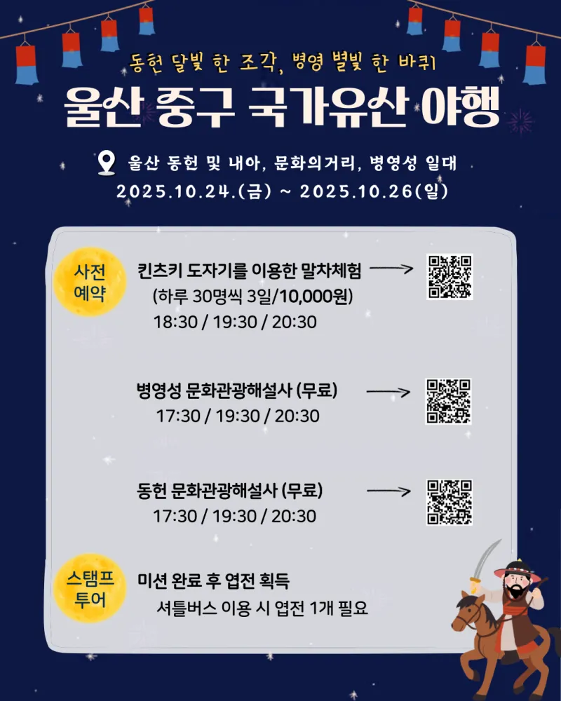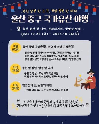 아름다운 가을밤, 우리 울산의 국가유산에서 야간 산책하며 체험까지 할 수 있는 탐방 프로그램, 울산 중구 국가유산 야행이 펼쳐집니다.