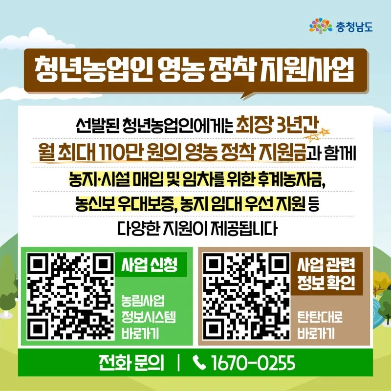 월 최대 110만 원의 영농 정착 지원금과 함께