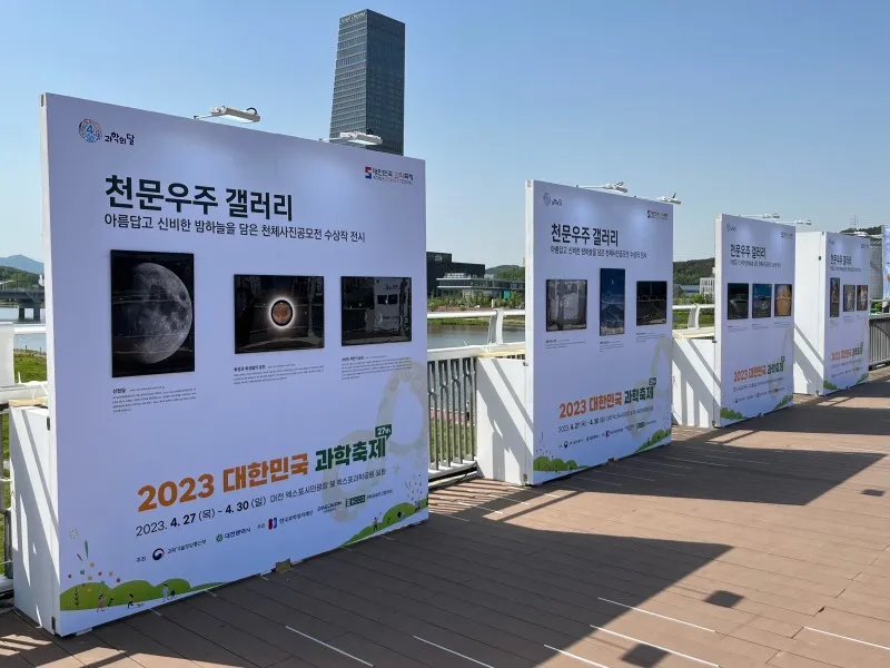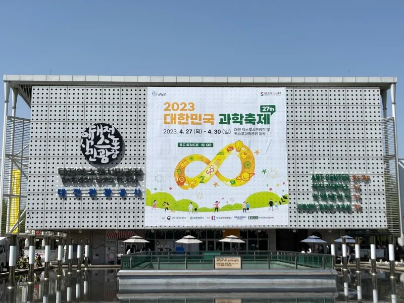 엑스포 시민광장 입구로 들어오시면 ‘2023 대한민국 과학축제’ 대형 포스터가 보입니다! 시작부터 행사 느낌이 물씬 나는데요!