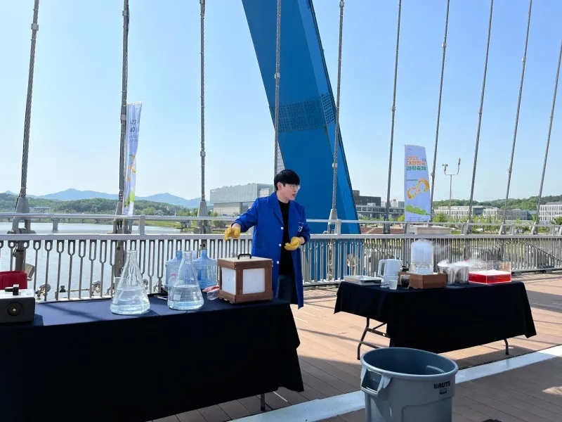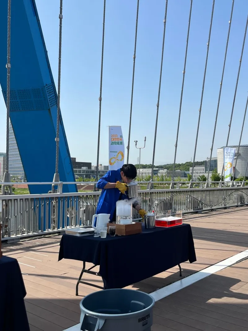 사이언스 브릿지 한 편에서는 버스킹 사이언스 공연이 한창이었는데요, 사이언스 브릿지에서 공연이라니 정말 놀라웠습니다! 신기한 사이언스 버스킹이기에 평소 즐기던 버스킹과는 사뭇 다른 즐길 거리였습니다!
