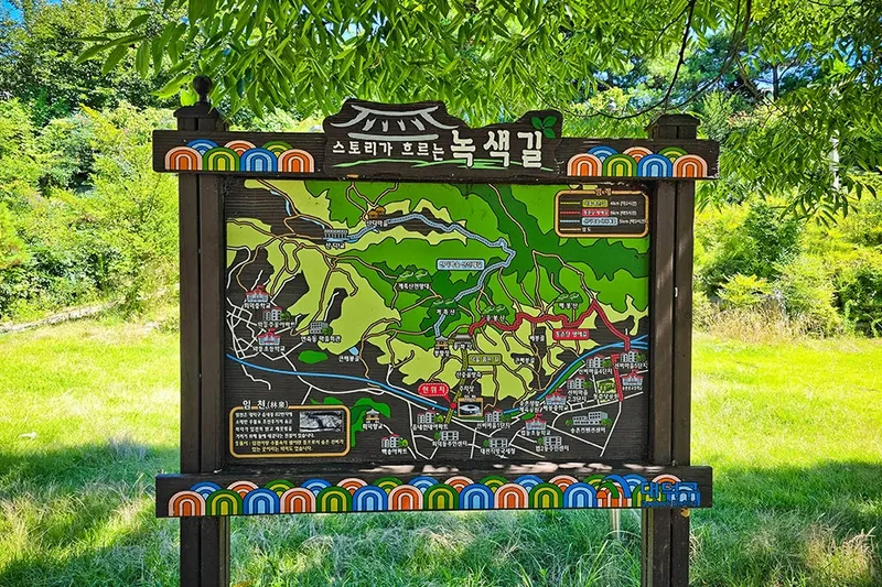 그 앞에는 스토리가 흐르는 녹색길로 주변 안내 지도가 표시되어 있는데 이곳의 위치도 나와 있습니다.