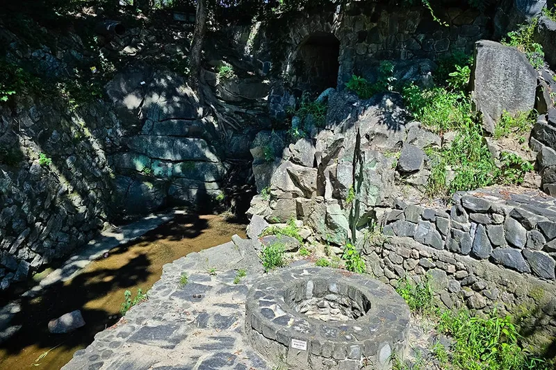 밑으로 내려와서 다시 그 우물 근처로 가면 읍내동 암각군이라는 표지판도 볼 수 있습니다. 이곳은 예전에 빨래터로 사용하던 곳으로 주변에 석괴들이 깎아 놓은 것처럼 서 있으며 인위적으로 쌓은 것인 풍화 되어 저절로 갈라진 것인지 구분하기 어렵다고 적혀 있습니다.