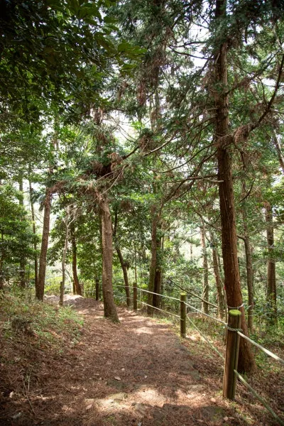 나무가 우거진 숲길과 오르막을 15분 정도 걸으면 정상에 도착할 수 있어