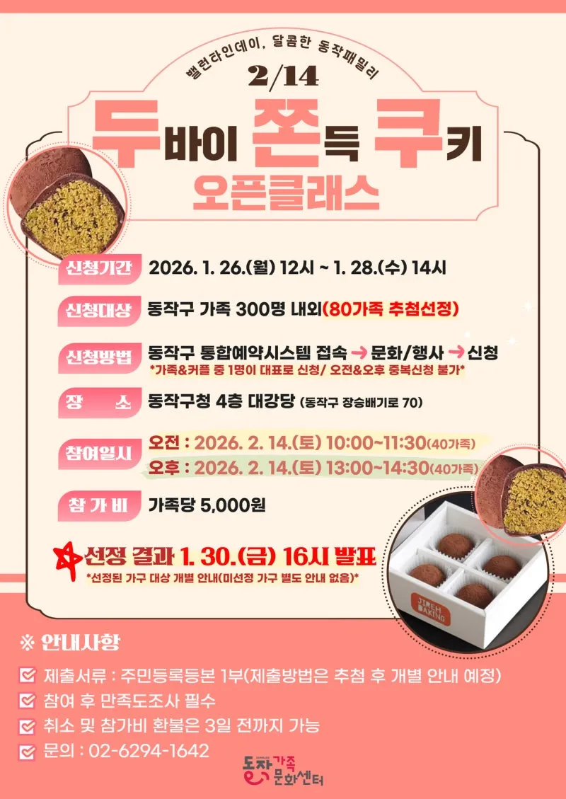 동작구 가족 여러분을 "두바이 쫀득쿠키 오픈클래스"에 초대합니다 😊