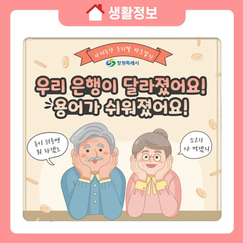 #창원 #창원시 #창원특례시 #아리송한우리말 #우리말바로잡기 #금융앱고령자모드 #은행용어 #은행용어풀이 #방카슈랑스 #PB