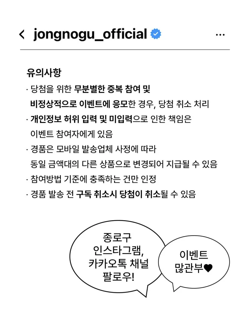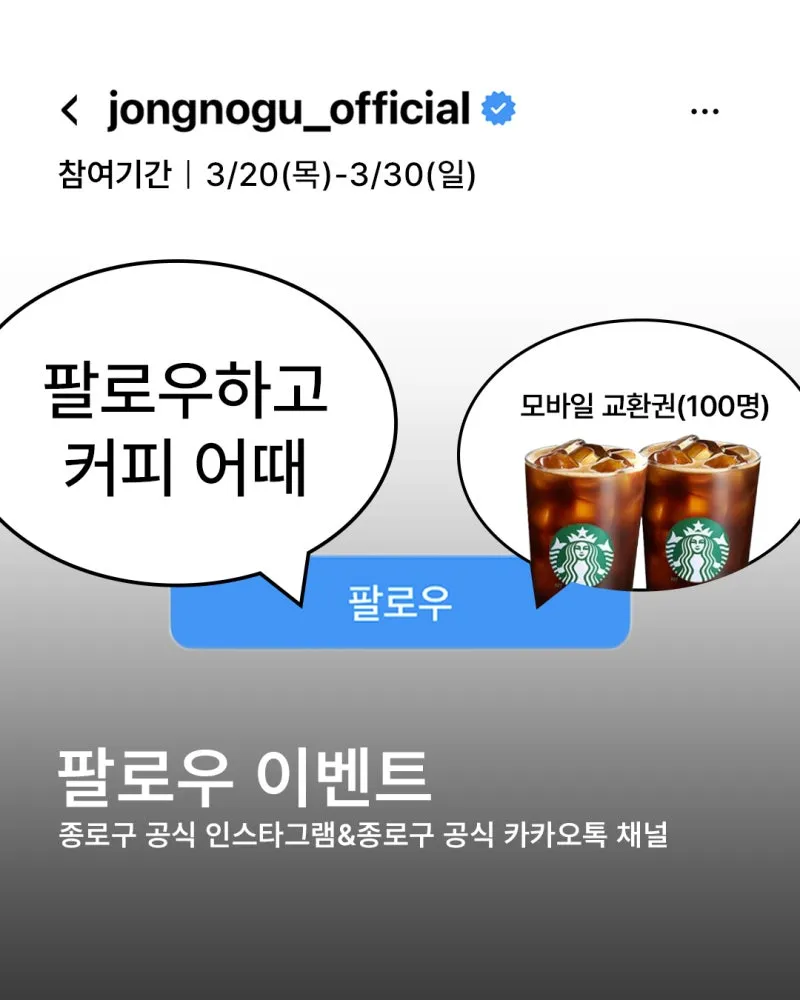 종로구 공식 SNS 채널 팔로우 이벤트!