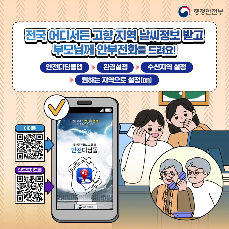📲 전국 어디서든 고향 지역 날씨정보 받고 부모님께 안부전화를 드려요!