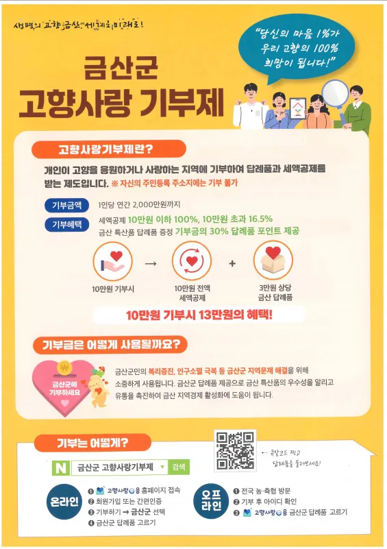 따뜻한 마음 1%가 금산의 100% 희망이 됩니다. 고향사랑 기부제