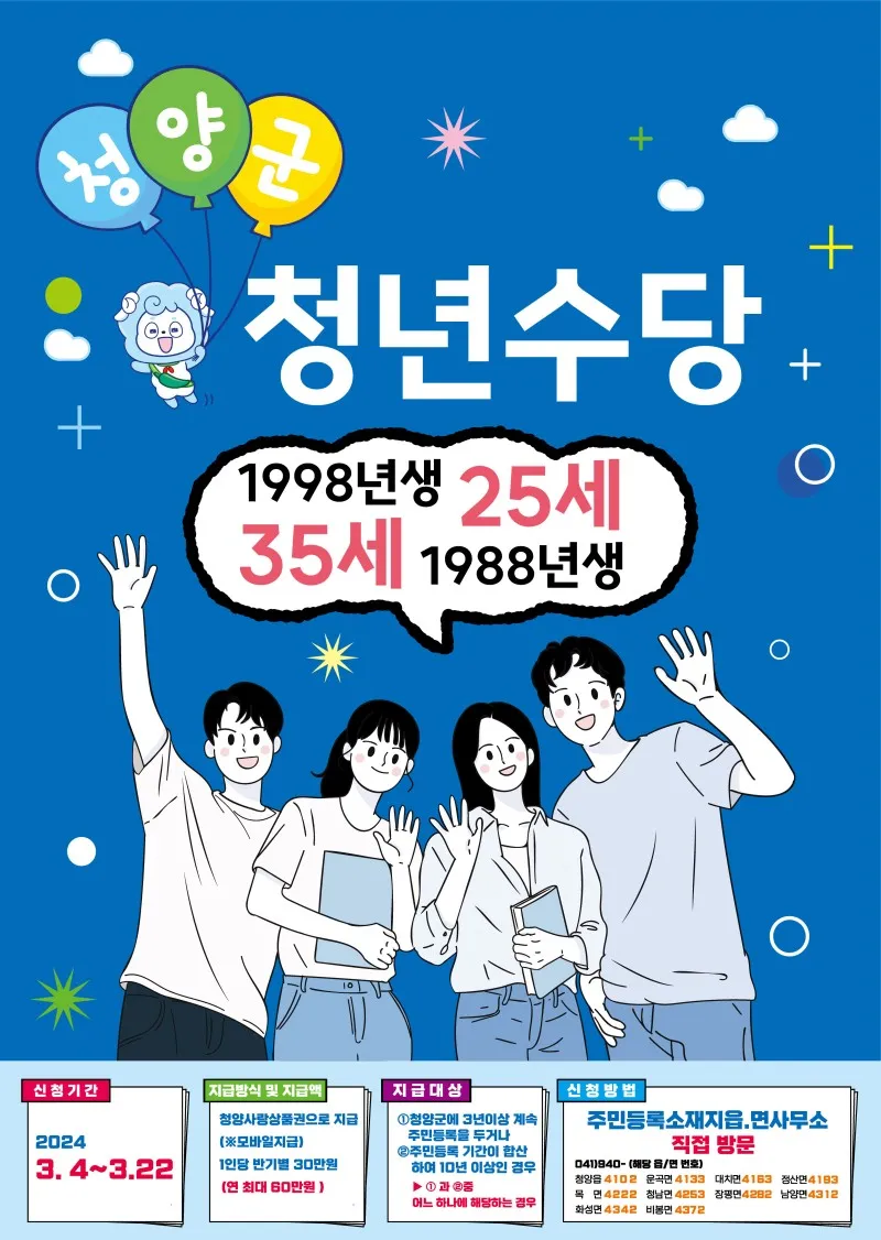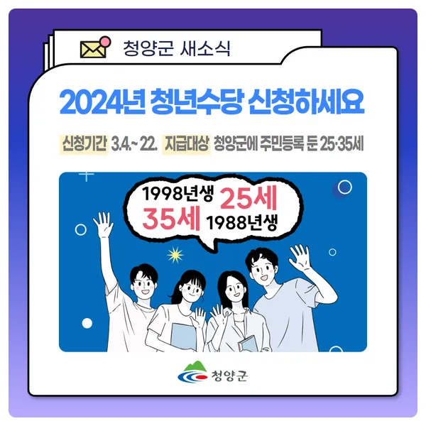 청양군의 청년사랑, '청년수당' 신청하세요! (2024.3.4.~22.)