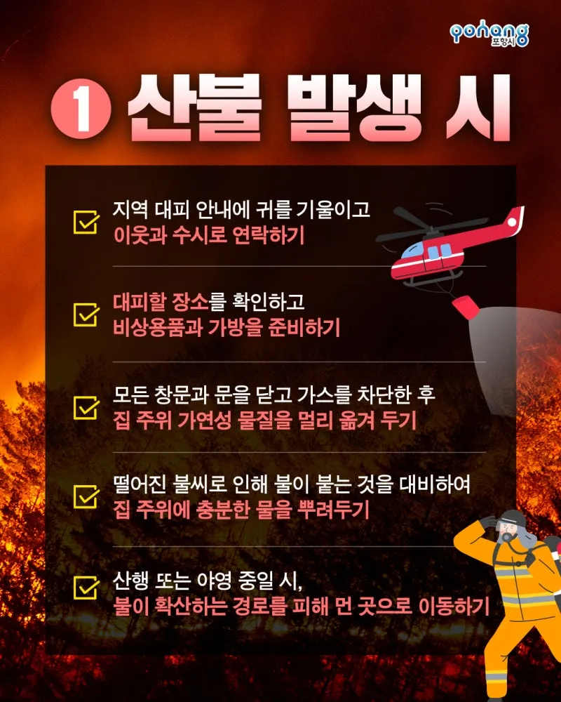 전국 동시다발 산불발생, 실전 산불 행동요령
