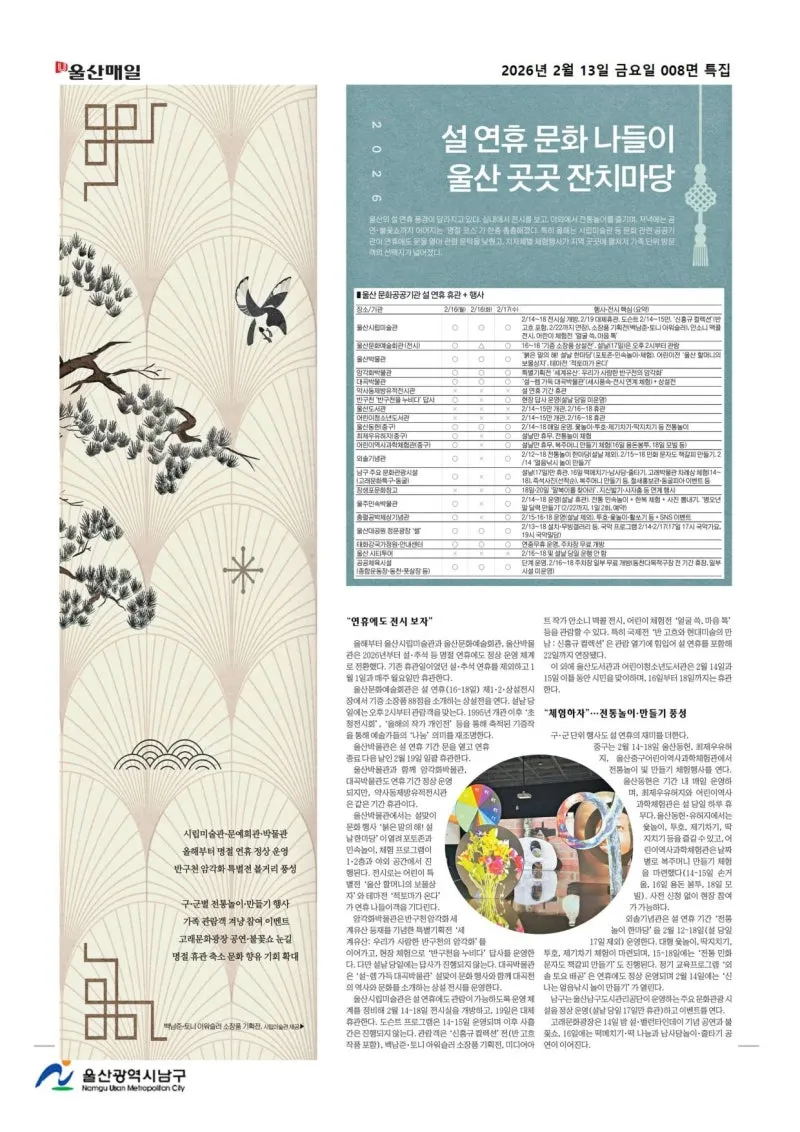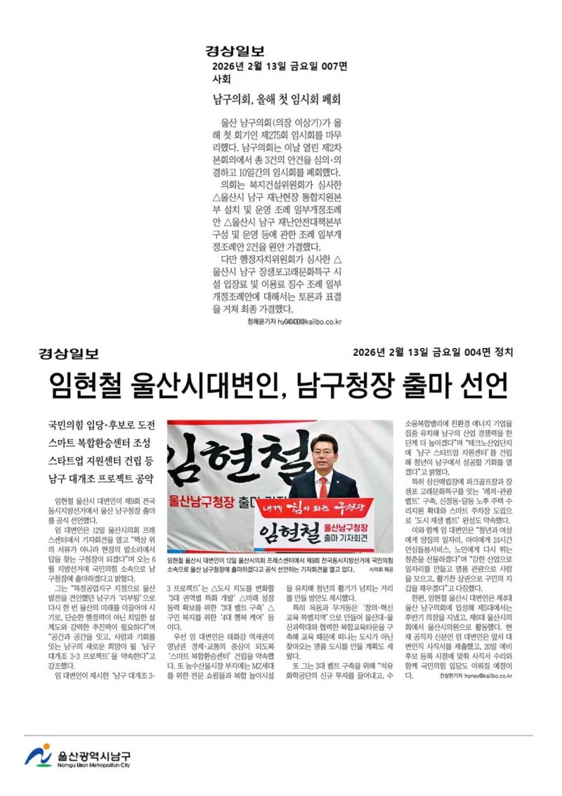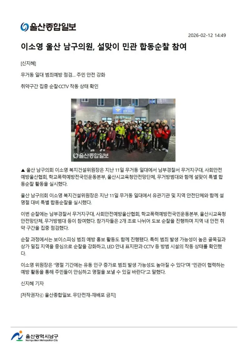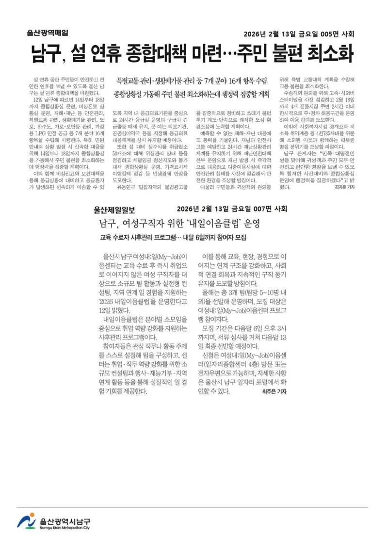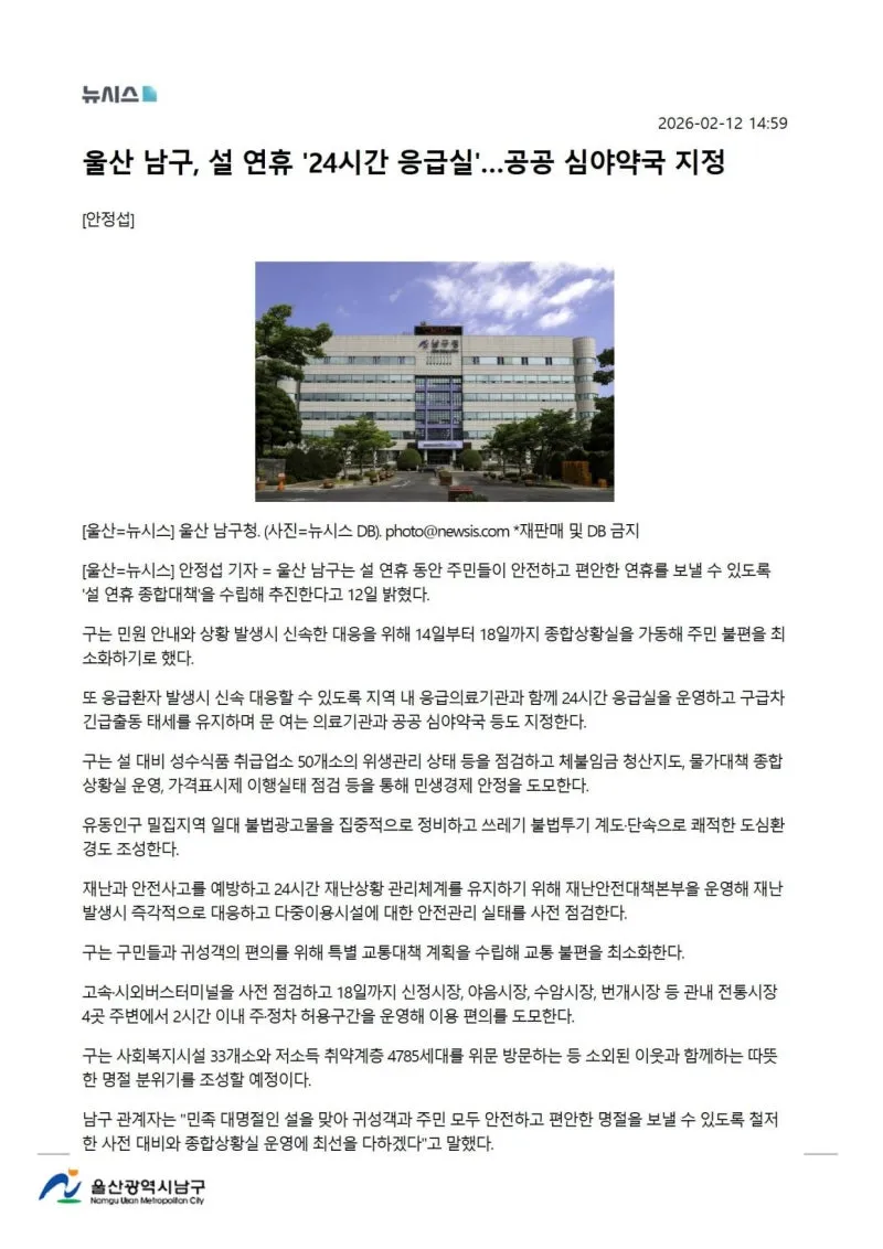 {"title":"[행복남구 오늘의신문] 설 연휴 종합대책 마련, 주민 불편 최소화! (2월 13일 금요일)","source":"https://blog.naver.com/ulsan-namgu/224182306895","blogName":"울산광역시..","domainIdOrBlogId":"ulsan-namgu","nicknameOrBlogId":"울산광역시남구청","logNo":224182306895,"smartEditorVersion":4,"cafeDisplay":false,"outsideDisplay":false,"blogDisplay":false,"meDisplay":true,"lineDisplay":true}