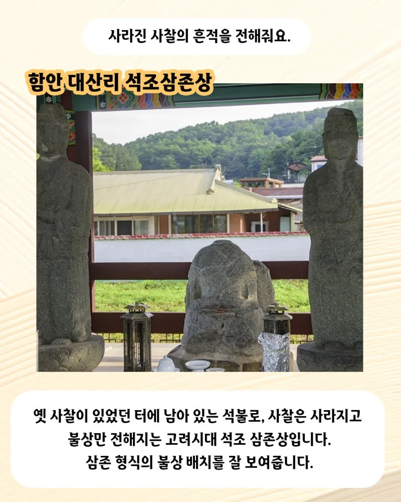 옛 사찰의 흔적을 전하는 함안 대산리 석조삼존상,