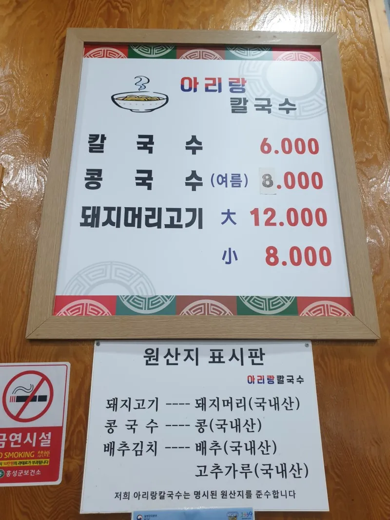 휴일은 매달 15~16일입니다. 점심시간대만 먹어볼 수 있는 아리랑칼국수는 착한 가격업소입니다.