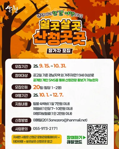 「쉴곳살곳 산청곳곳」 참가자 모집