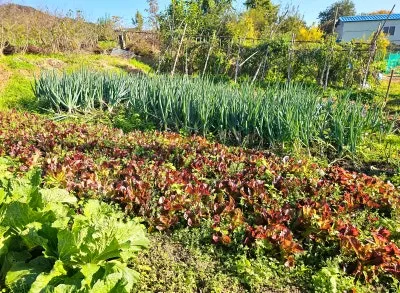 싱싱하게 자라고 있는 채소도 보이고, 과수원도 보입니다.