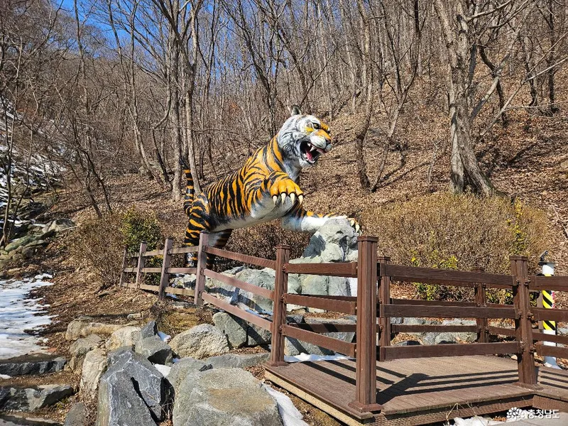 출렁다리를 건너면서 호랑이를 만날 수 있습니다. 호랑이의 정면으로 표정을 보니 마치 진짜와 같은 착각을 일으킬 정도로 용맹해 보입니다.