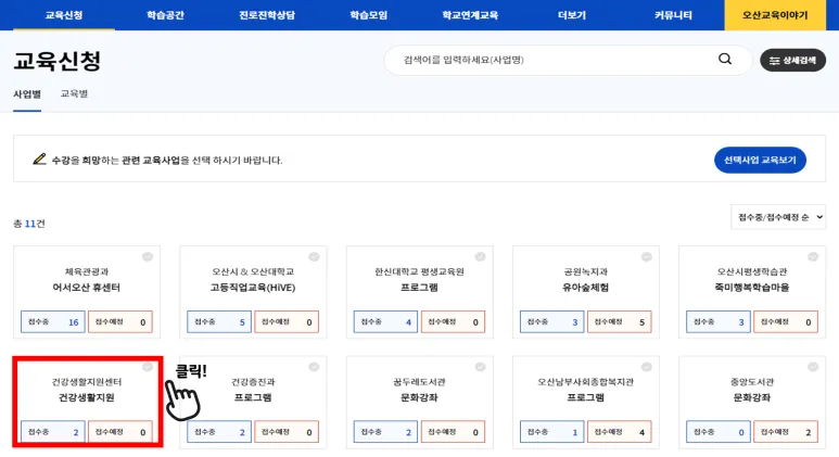 당뇨병 건강교실은 오산시 교육포털 오늘e에서 신청이 가능한데요