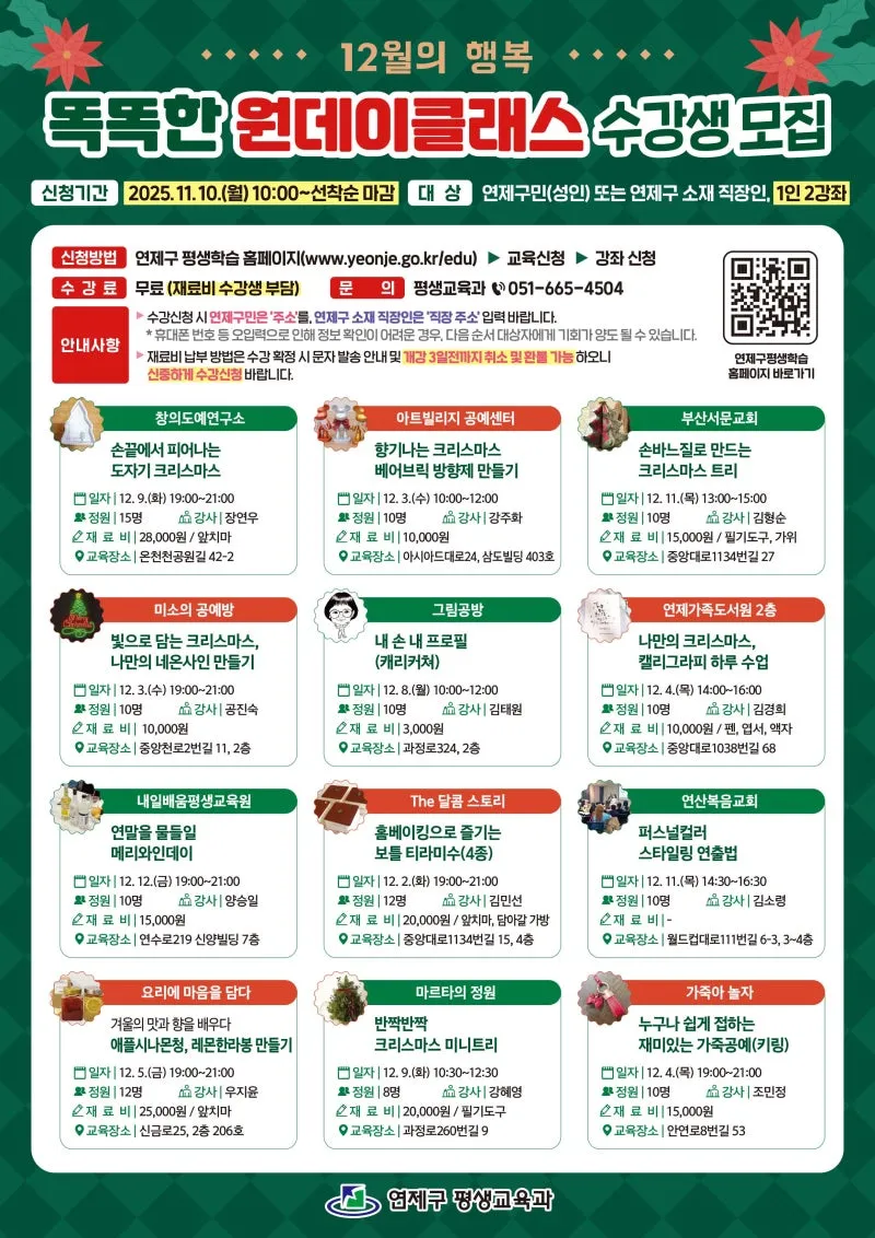 🎁 12월의 행복, 연제구 똑똑한 원데이클래스 수강생 모집