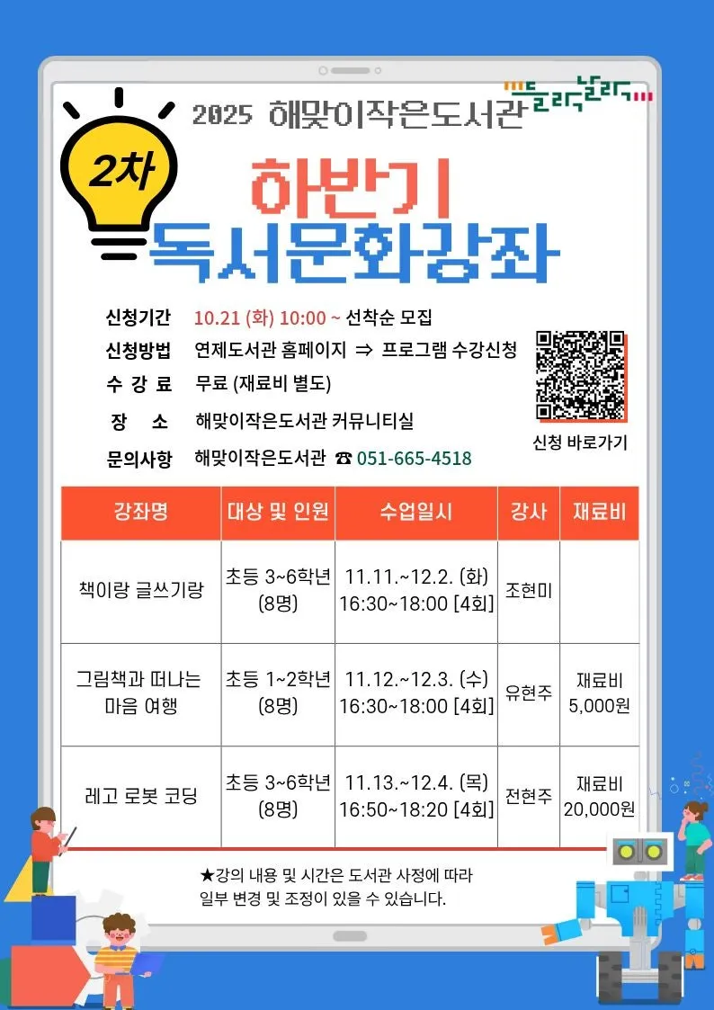 💡 2025 해맞이작은도서관 하반기 독서문화강좌 2차 수강생 모집
