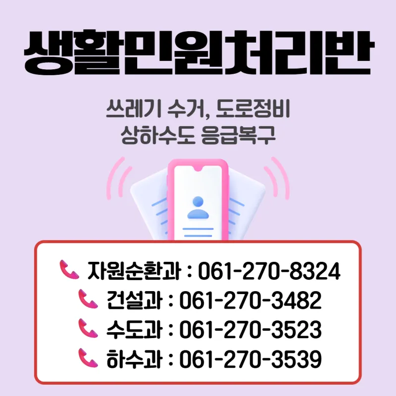 [생활(☎ 061-270-8503), 음식물(☎ 061-270-8574)]