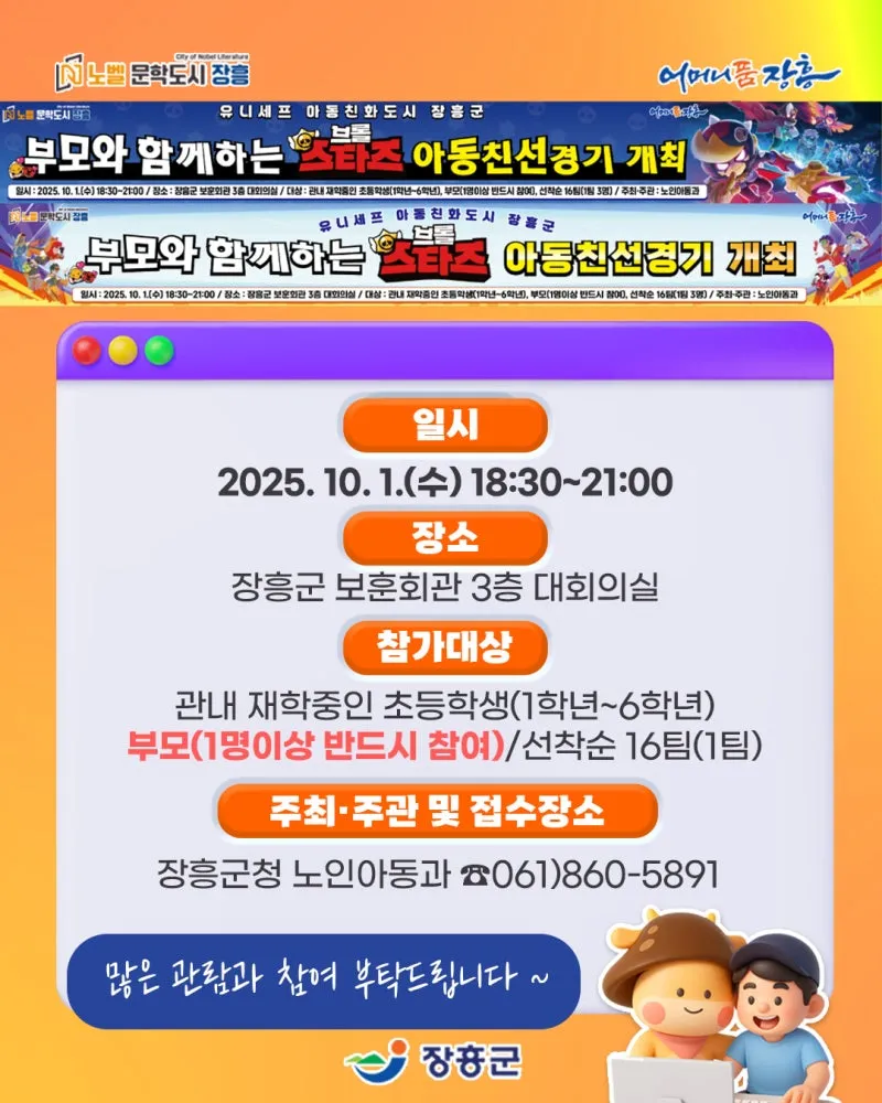#장흥군 #브롤스타즈 #아동친선경기 #부모참여 #가족이벤트 #게임축제 #유니세프아동친화도시