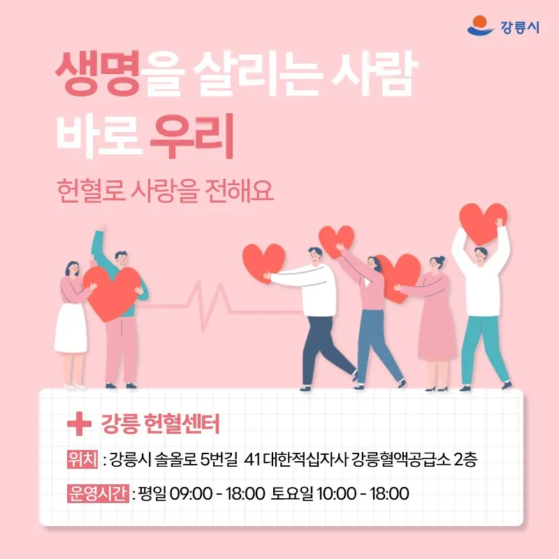 강릉 헌혈센터에서 헌혈로 사랑을 전해보세요!