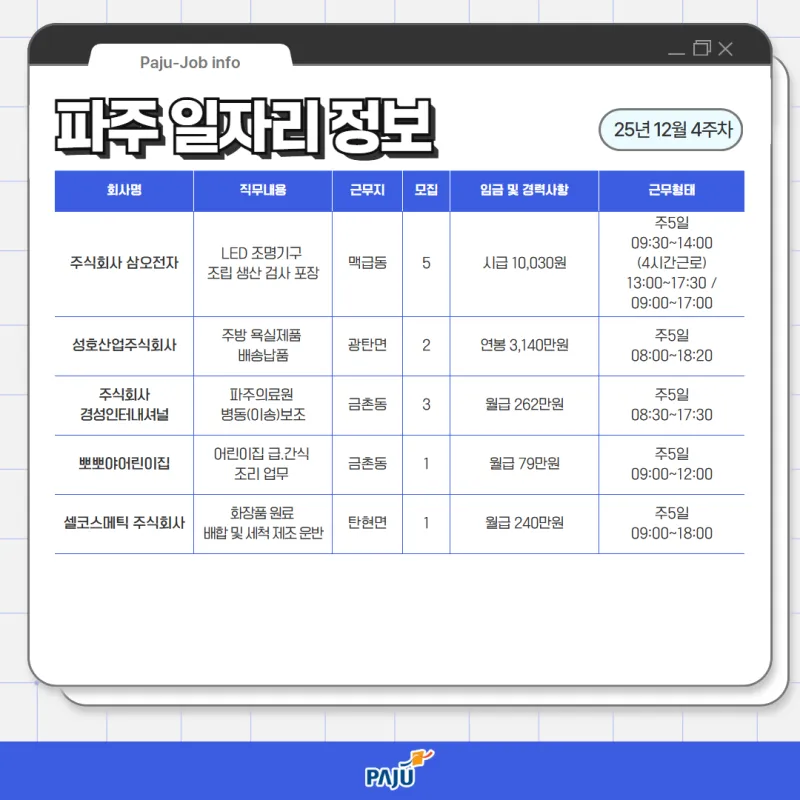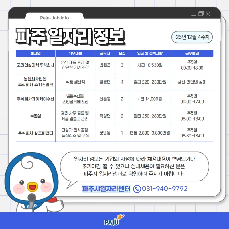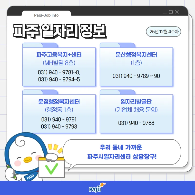 파주시일자리센터로 확인 또는 문의해 주시기 바랍니다.