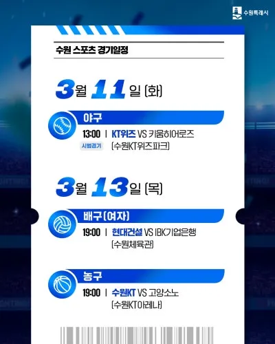 [2025년 3월 셋째 주] 이번 주 수원 스포츠 경기 일정 안내