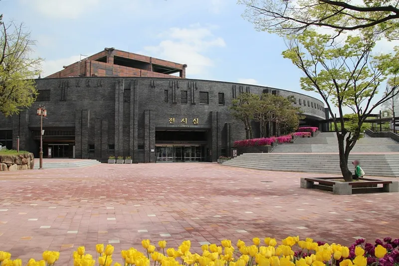 전시실 앞 광장 화단에도 피어난 튤립은 봄의 소식을 전하며