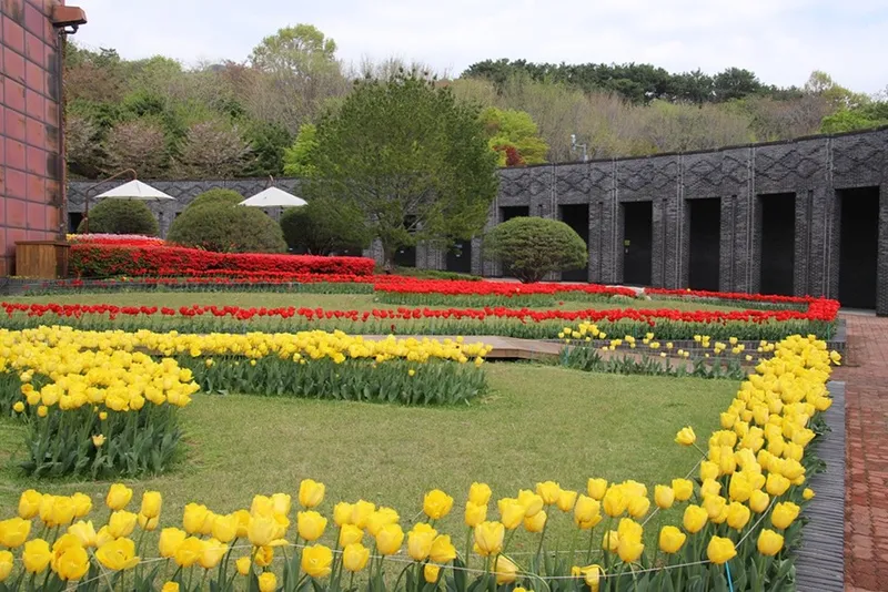 주차장에서 전시실 입구로 가는 인도의 화단에는 튤립이 피어나