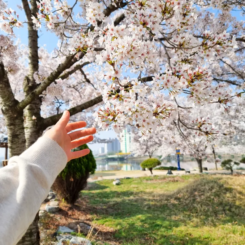그리고 산책로를 따라 핀 벚꽃을 즐기며 천천히 걸어보세요.