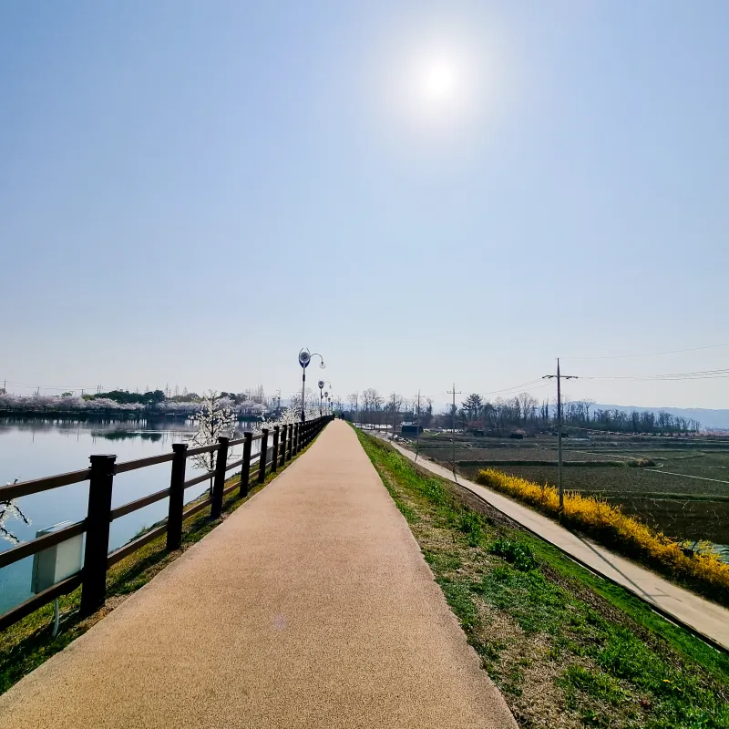 우로지 둘레를 따라 조성된 길은 걷기 편하도록 포장이 되어있고,