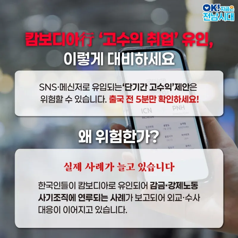 [전남소식] 캄보디아行‘고수익 취업’유인, 이렇게 대비하세요