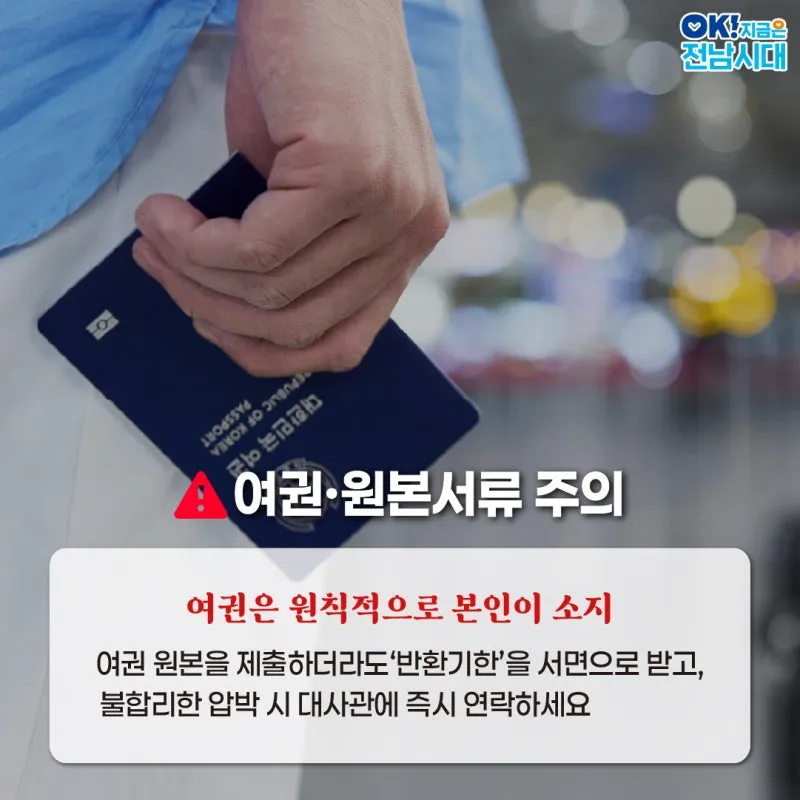 여권 원본은 원칙적으로 본인이 직접 소지해야 합니다.