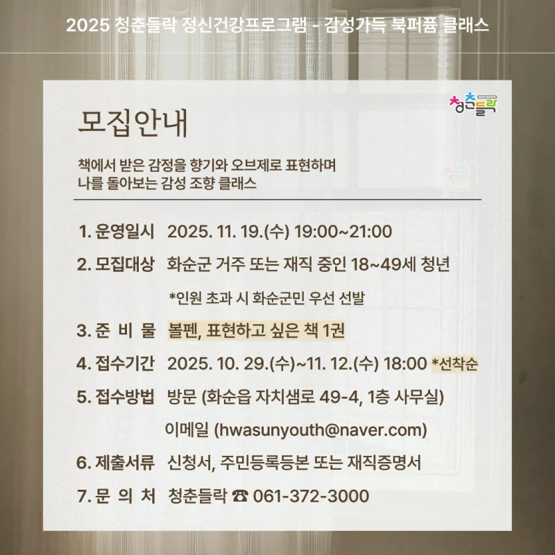 [청춘들락] '감성가득 북퍼퓸 클래스' 교육생 모집