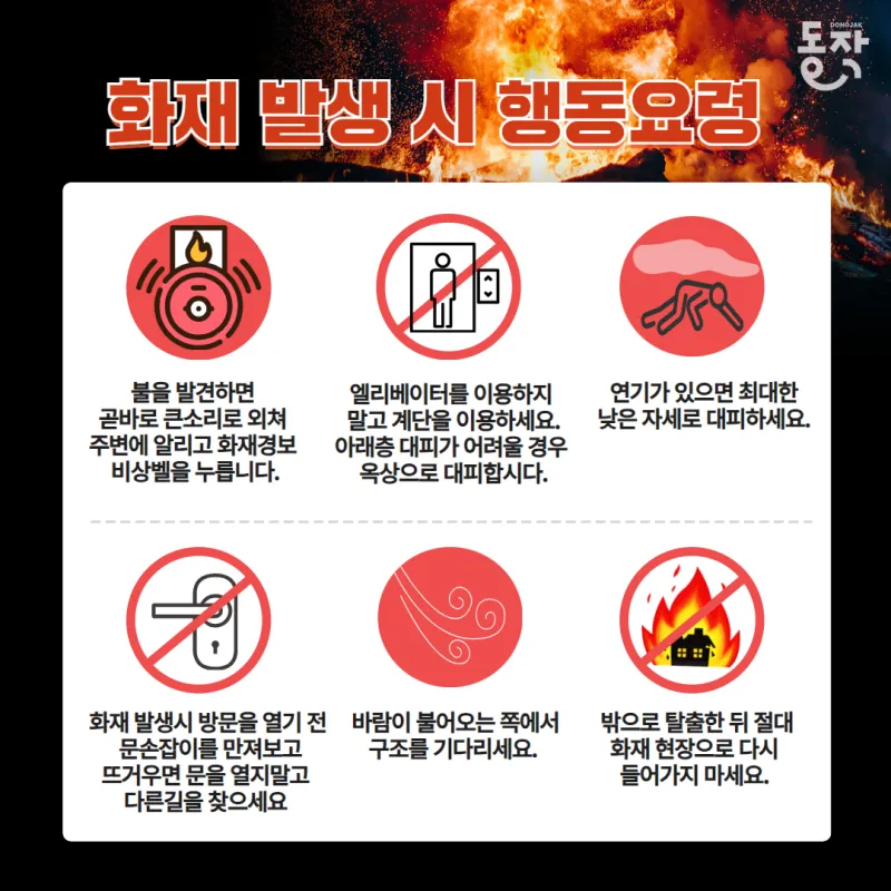 ✅ 화재 발생 시 방문을 열기 전에 문손잡이를 만져보세요