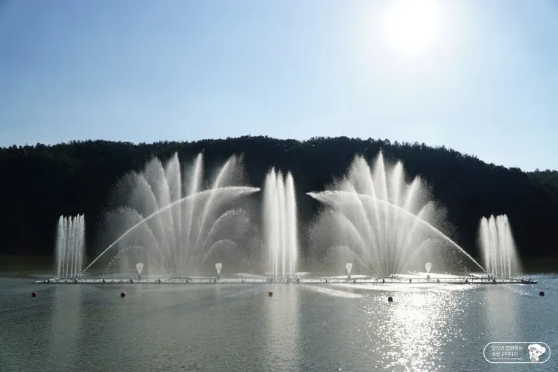 뿐만 아니라 저수지 가운데 음악분수도 조성하여 낮이나 밤이나 아주 멋진 모습을 보여주고 있습니다.