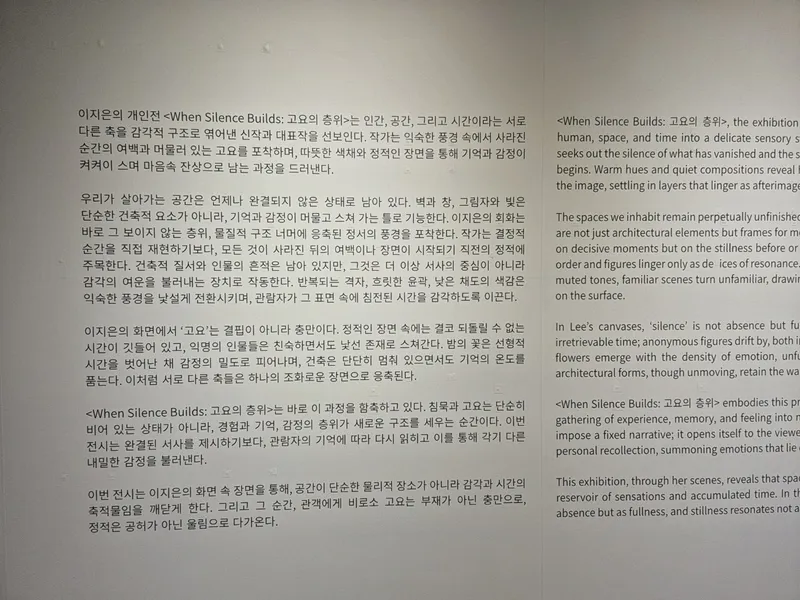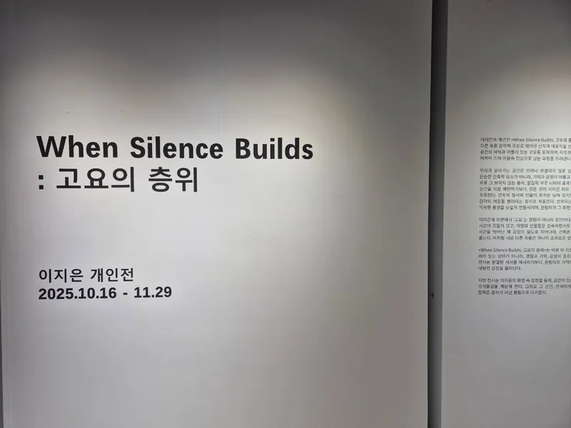 현재 이곳에서는 작가 이지은의 개인전 <When Silence Builds : 고요의 층위>가 열리고 있어요.