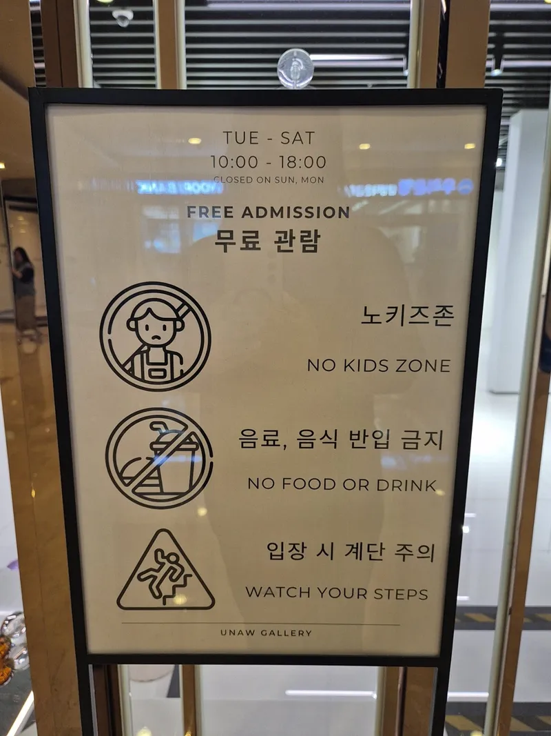 유의사항: 노키즈존 / 음식·음료 반입 금지