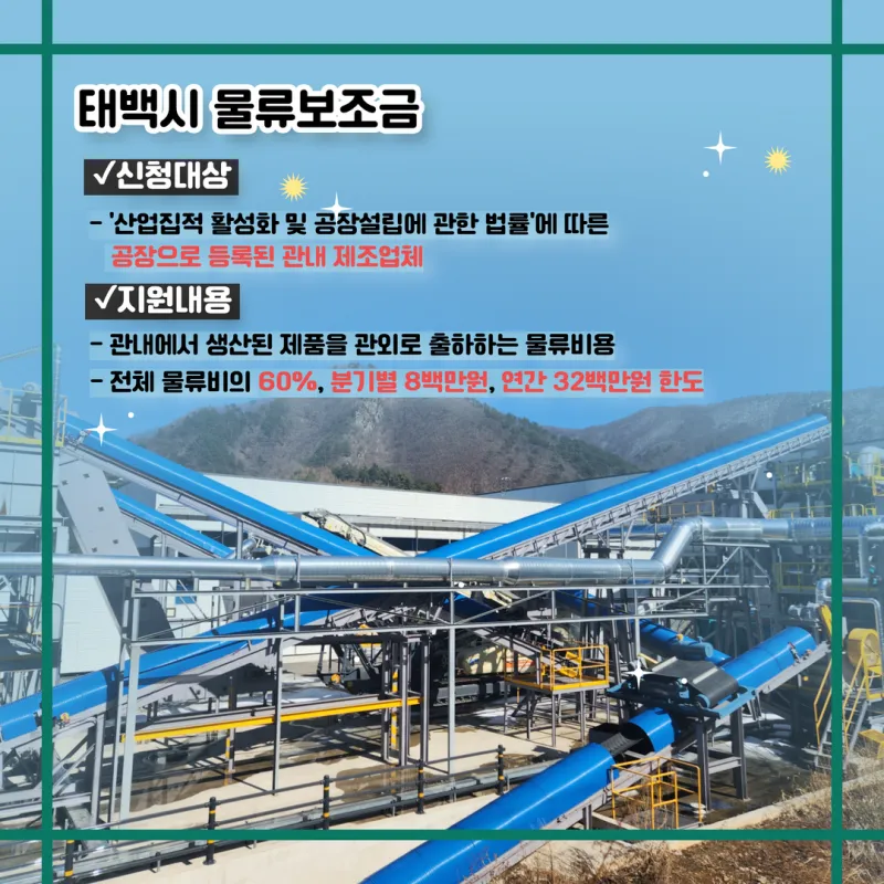 - 전체 물류비의 60%, 분기별 8백만원, 연간 32백만원 한도
