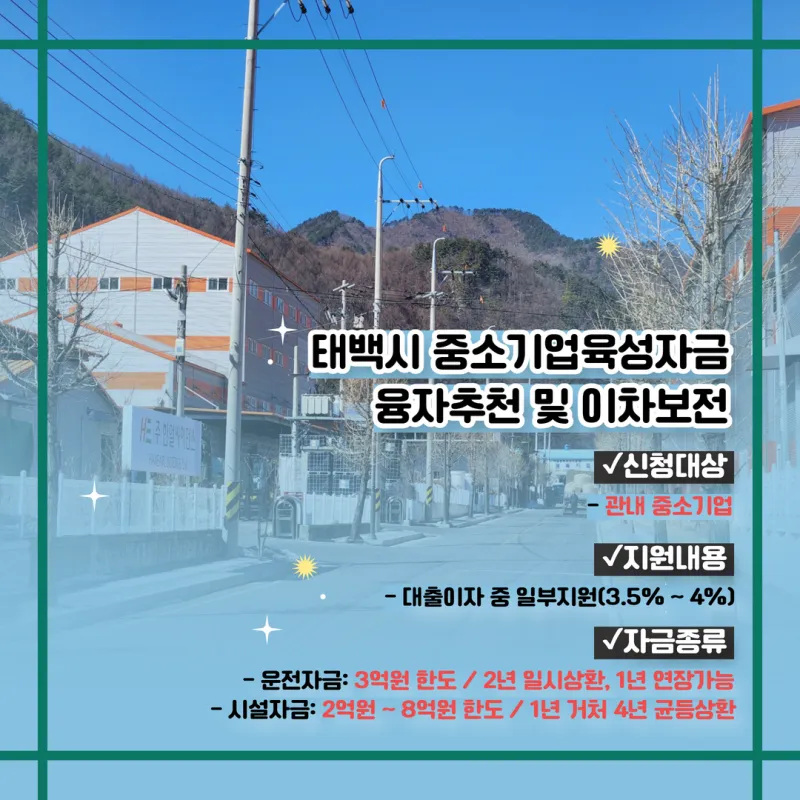 □ 태백시 중소기업육성자금 융자추천 및 이차보전