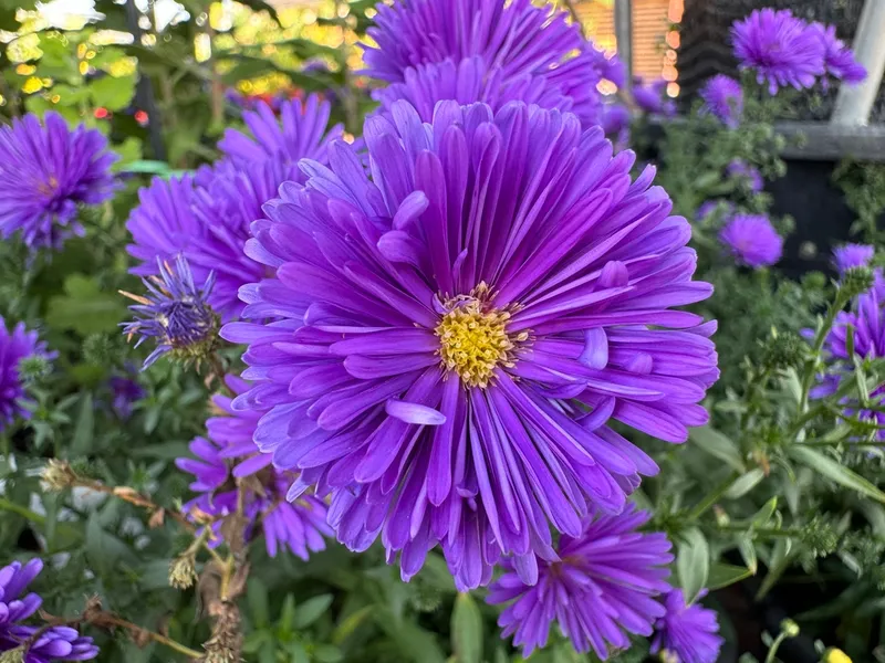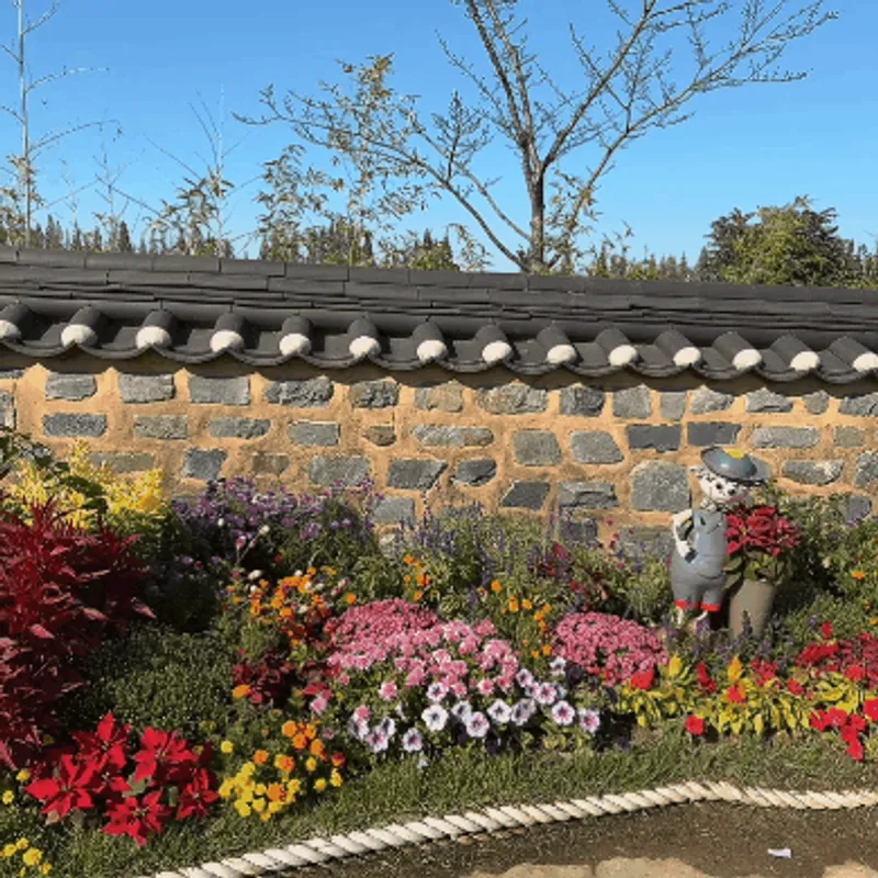 가을꽃으로 둘러싸여 가을 정취가 가득합니다.
