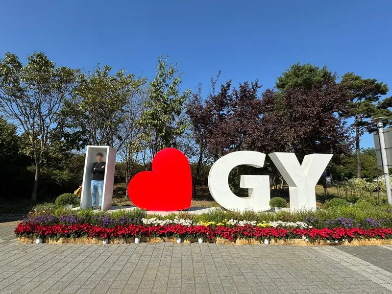계양 아라온 초입에 있는 황어 동상과 디자인큐브 옆에 있는 I Love GY